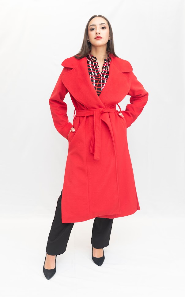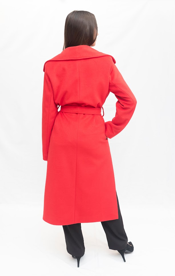 Abrigo largo con cinturón y solapas amplias en un vibrante tono rojo. Suave, elegante y con un tacto excepcional. Diseño exclusivo de D’l Giulia Mastini.