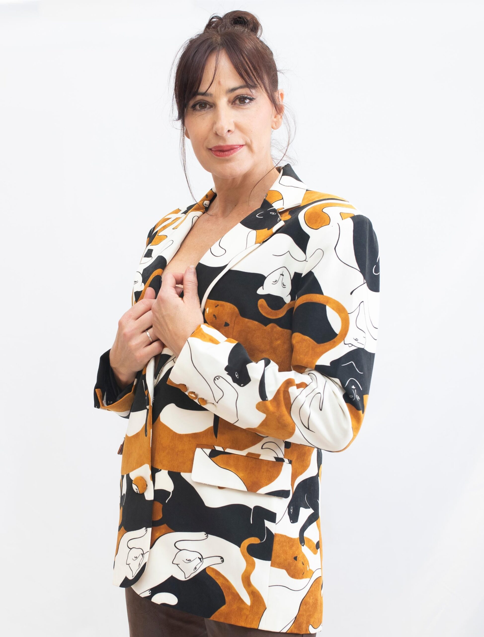 Esta americana refleja el carácter de una mujer segura, con gusto por la moda y pasión por las prendas diferentes y de calidad.